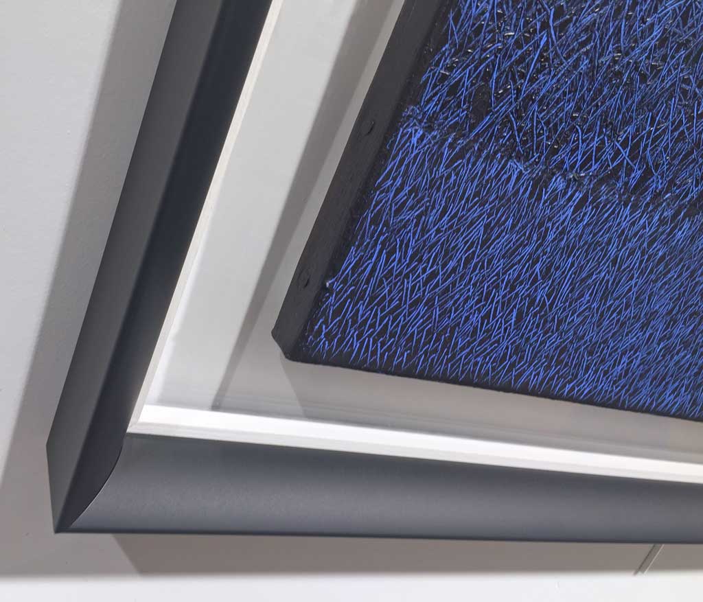 Noir filet blanc cache clous argent vif plexi fumé (Véronique Fabre/Cadr'Art-Dijon)