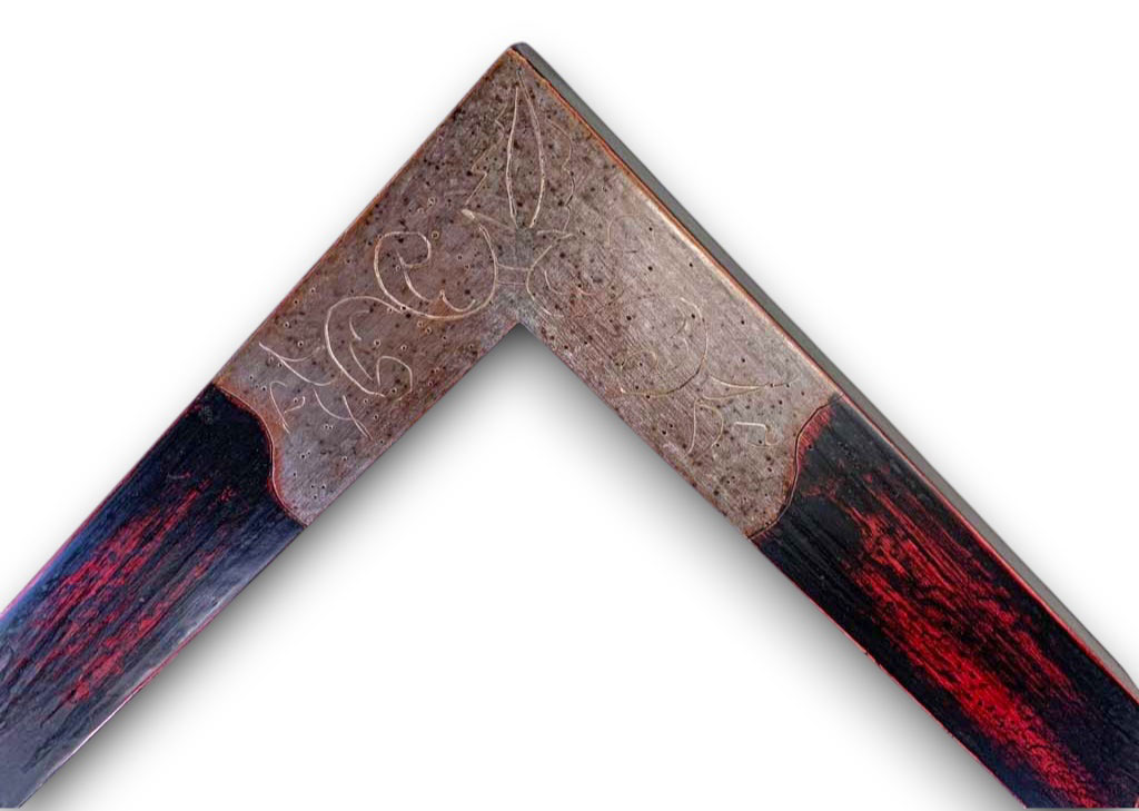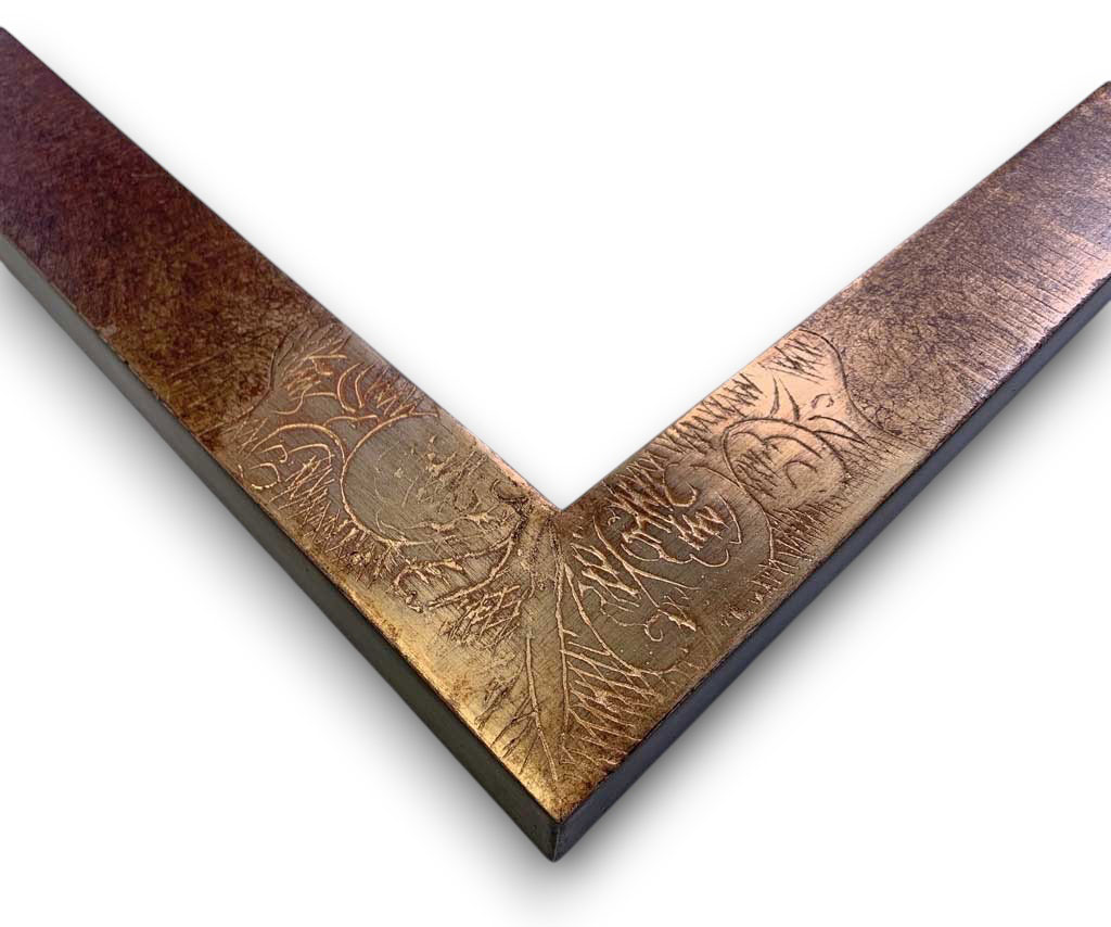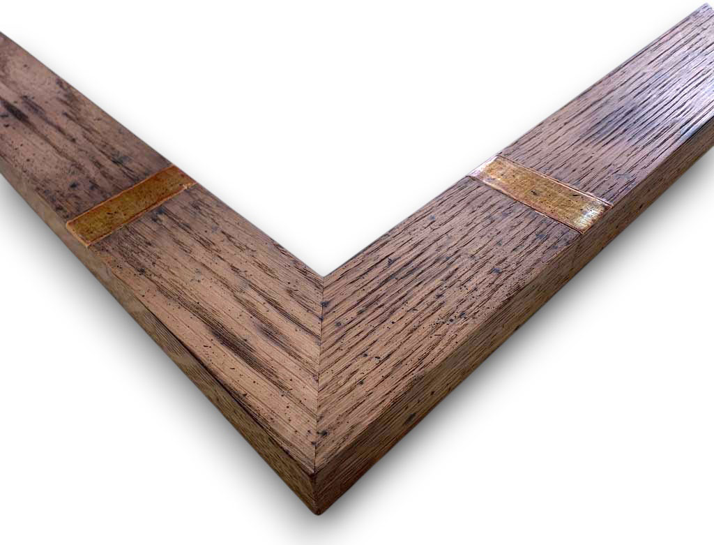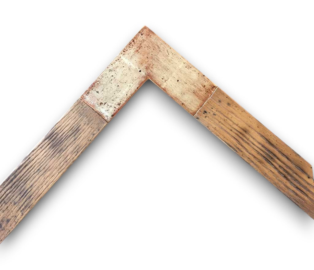 Chêne brûlé patiné angles or blanc oxydé
