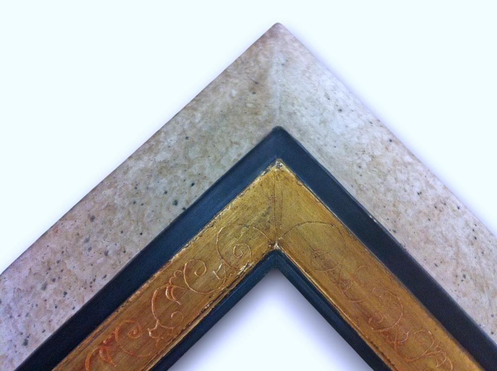 Blanc moucheté filet noir mli gravé or filet noir