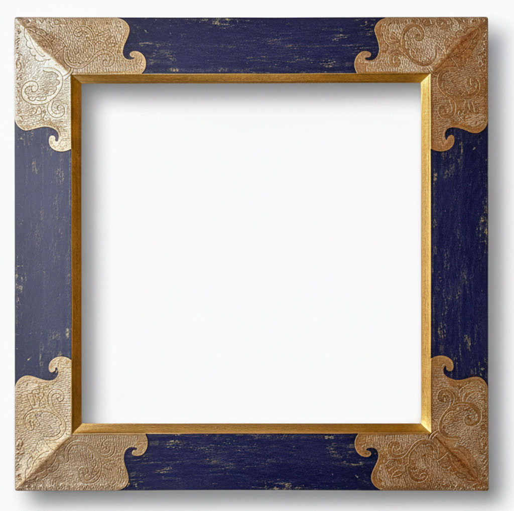 Angle gravé or blanc filet or fin couleur antique (bleu nuit)