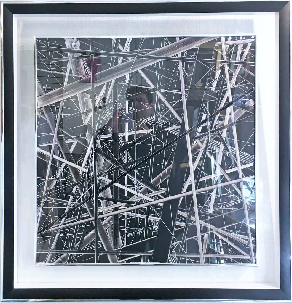 Plat argent vif extérieur noir mat rehausse jaune plexi noir cache-clous argent vif (estampe japonaise)