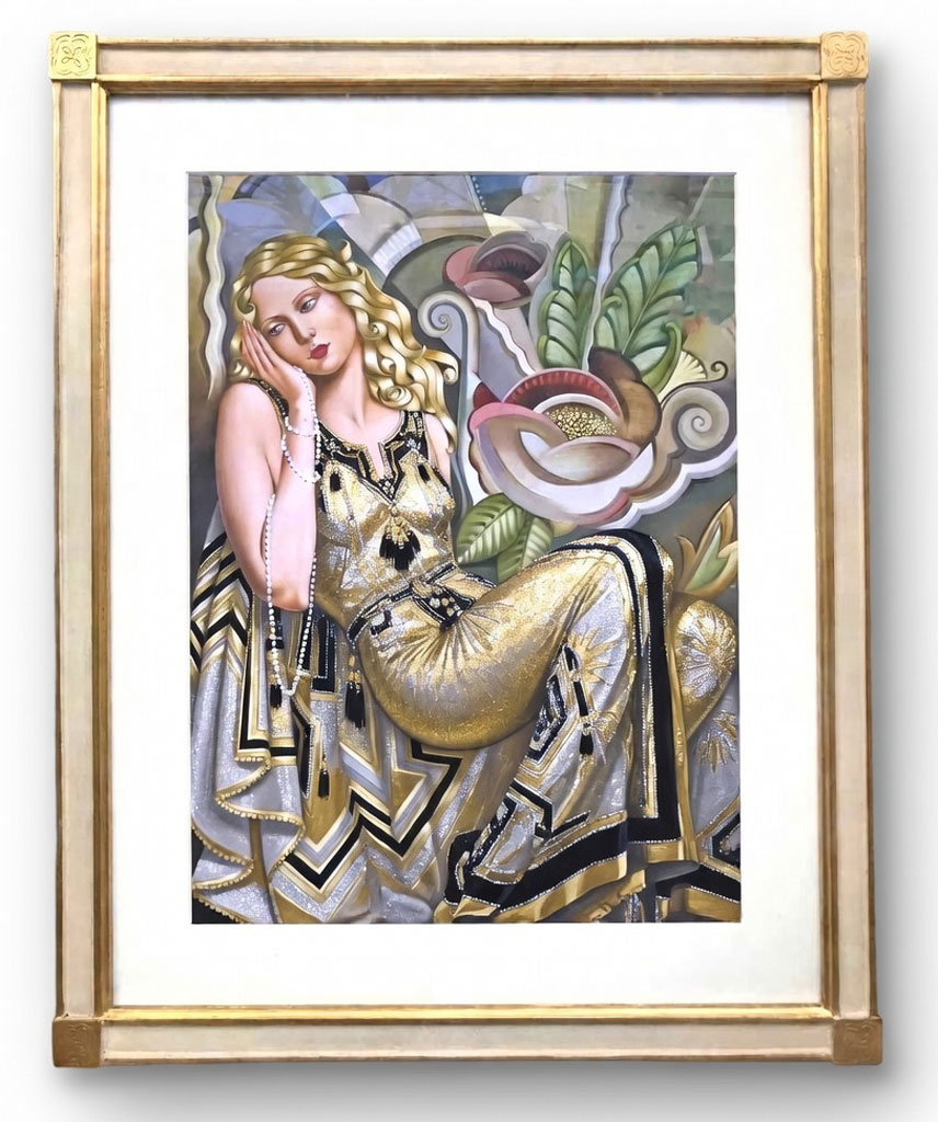 Arlequin vieux bleu vieux blanc filets or